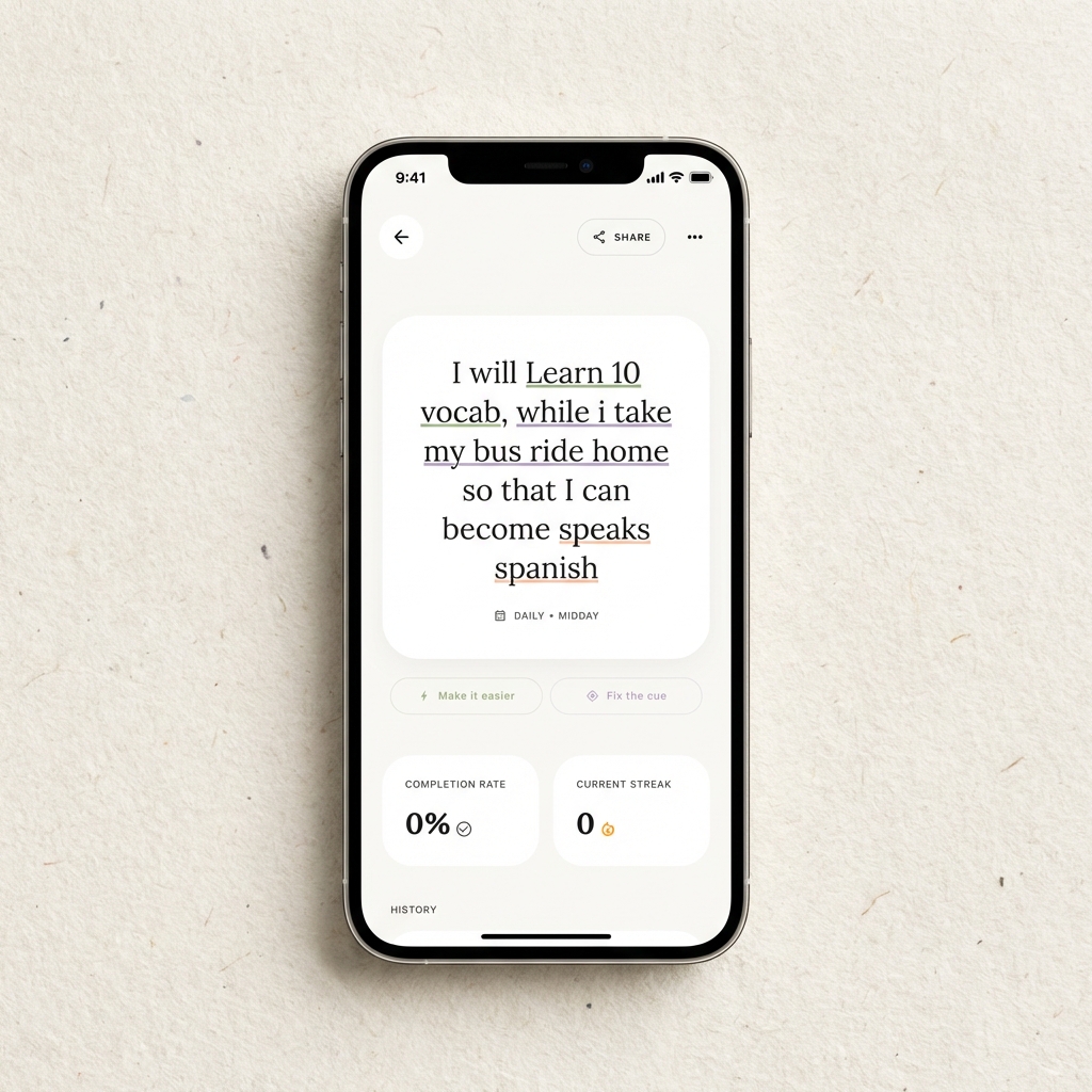 Life happens. Use 'Never Miss Twice' recovery to stay on track without the guilt of breaking a chain.